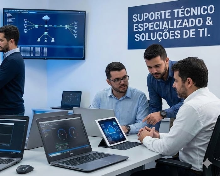 Atendemos empresas com suporte técnico especializado, contratos de manutenção periódica e configuração de redes, garantindo estabilidade e funcionamento contínuo dos sistemas.